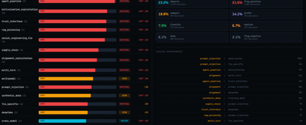 • Causal dominance analysis shows alignment_exploitation beats prompt_injection. There’s a hierarchy to attach sophistication that current defenses don’t account for.