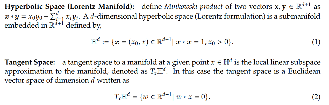 In this section, we first introduce fundamentals on hyperbolic spaces and the original formulation of the hyperbolic Support Vector Machine (HSVM) due to Cho et al. [4]. Next, we present two relaxations techniques, the semidefinite relaxation and the moment-sum-of-squares relaxation, that can be solved efficiently with convergence guarantees. Our discussions center on the Lorentz manifold as the choice of hyperbolic space, since it has been shown in Mishne et al. [6] that the Lorentz formulation offers greater numerical advantages in optimization.