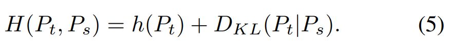 The centering avoids the collapse induced by a dominant dimension, but encourages an uniform output. Sharpening induces the opposite effect. We show this complementarity by decomposing the cross-entropy H into an entropy h and the Kullback-Leibler divergence (“KL”) DKL: