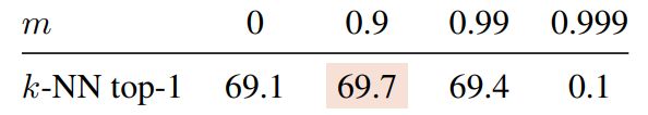 First we consider using the student net-work from a previous epoch as a teacher. This strategy has been used in a memory bank [73] or as a form of clustering hard-distillation [8, 2, 14]. Second, we consider using the student network from the previous iteration, as well as a copy of the student for the teacher. In our setting, using a teacher based on a recent version of the student does not converge. This setting requires more normalizations to work. Interestingly, we observe that using a teacher from the previ-ous epoch does not collapse, providing performance in the k-NN evaluation competitive with existing frameworks such as MoCo-v2 or BYOL. While using a momentum encoder clearly provides superior performance to this naive teacher, this finding suggests that there is a space to investigate alter-natives for the teacher.