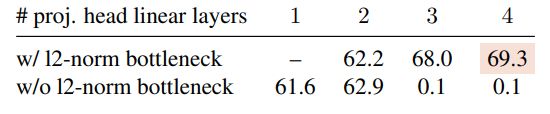 Figure 9: Projection head design w/ or w/o l2-norm bottleneck.