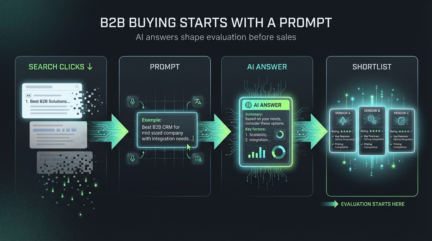 For B2B brands with long sales cycles, complex offerings, or high-consideration purchases, this visibility gap is quickly becoming the difference between being evaluated and being invisible.