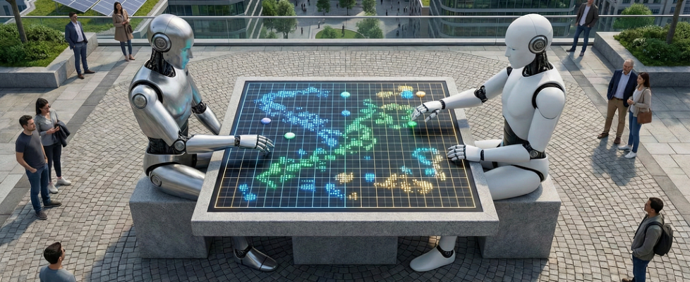 In addition, agents follow Cellular Automata mechanics — meaning they respond to their neighbors. An agent surrounded by high-tech peers may learn and upgrade; conversely, an agent surrounded by automation faces the risk of displacement.