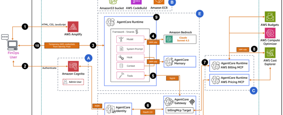 Managing costs across multiple AWS accounts often requires finance teams to query data from several sources to get a complete view of spending and optimization opportunities. In this post, you learn how to build a FinOps agent using Amazon Bedrock AgentCore that helps your finance team manage AWS costs across multiple accounts. This conversational agent consolidates data from AWS Cost Explorer, AWS Budgets, and AWS Compute Optimizer into a single interface, so your team can ask questions like “What are my top cost drivers this month?” and receive immediate answers.