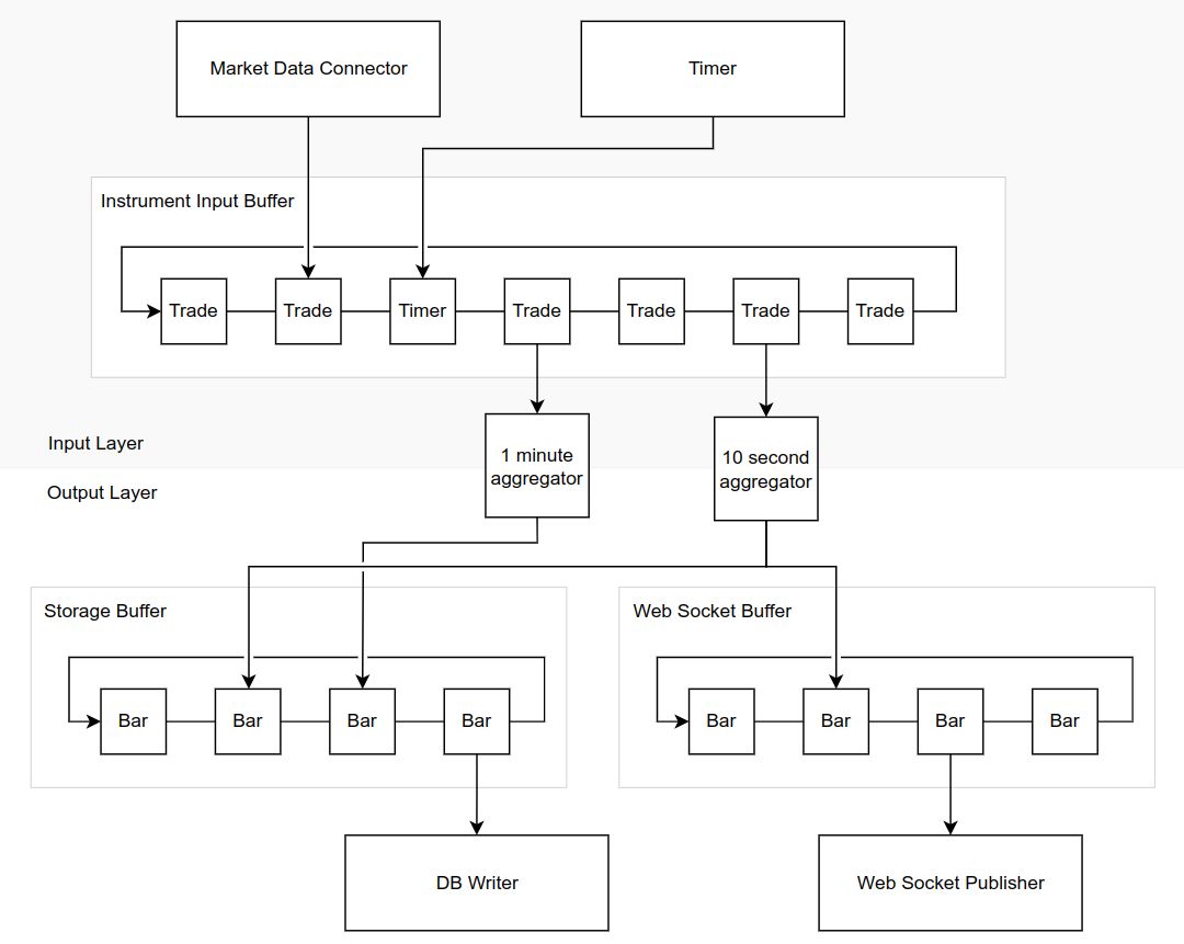 Key piece of the streaming service is tick aggregation. Raw ticks are coming from data sources. For each tick, we need: