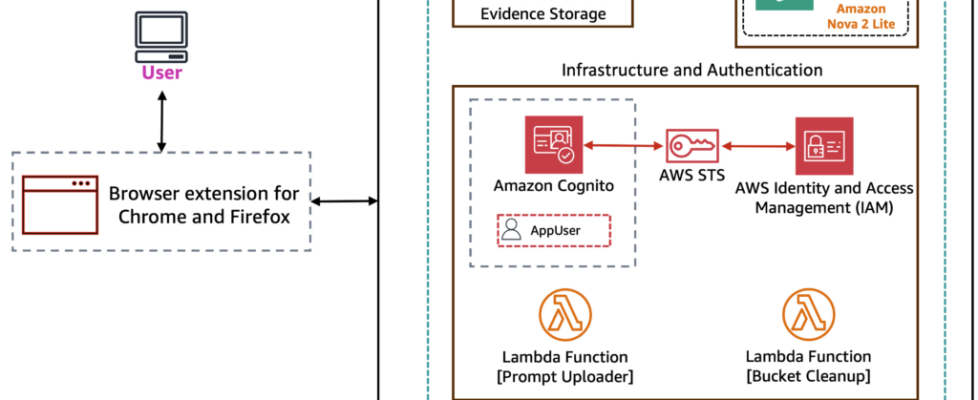 In this post, we show you how to build a similar system for your organization. You will learn the architecture decisions, implementation details, and deployment process that can help you automate your own compliance workflows. We built a browser extension that automates this evidence collection process using Amazon Bedrock with the Amazon Nova 2 Lite model. Your extension will execute pre-defined compliance workflows, automatically capture timestamped screenshots, and store organized evidence in Amazon Simple Storage Service (Amazon S3). It can also analyze compliance documents and generate new workflows using natural language processing (NLP).