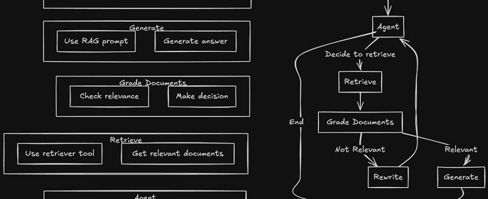 The rewrite function takes a question that failed retrieval grading and reformulates it. The rewriter prompts the LLM to generate a better search query; one that’s more likely to pull back relevant documents. This reformulated question gets passed back to the agent for another attempt.