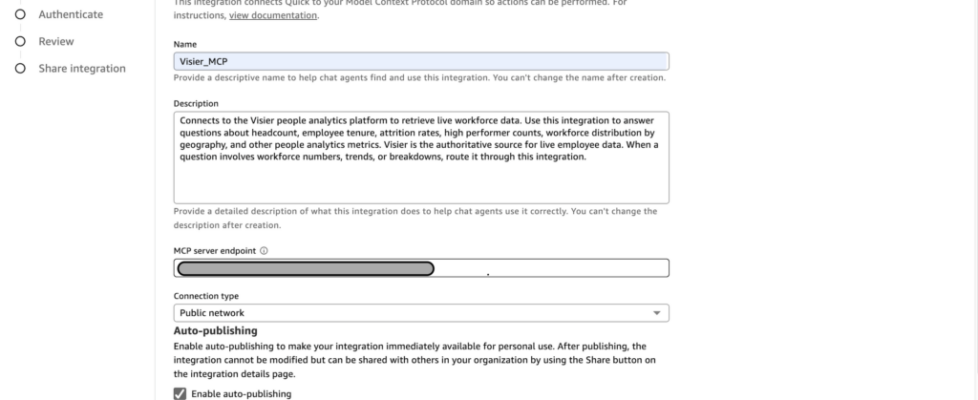 Step 2: Add Visier as an MCP integration in Amazon Quick