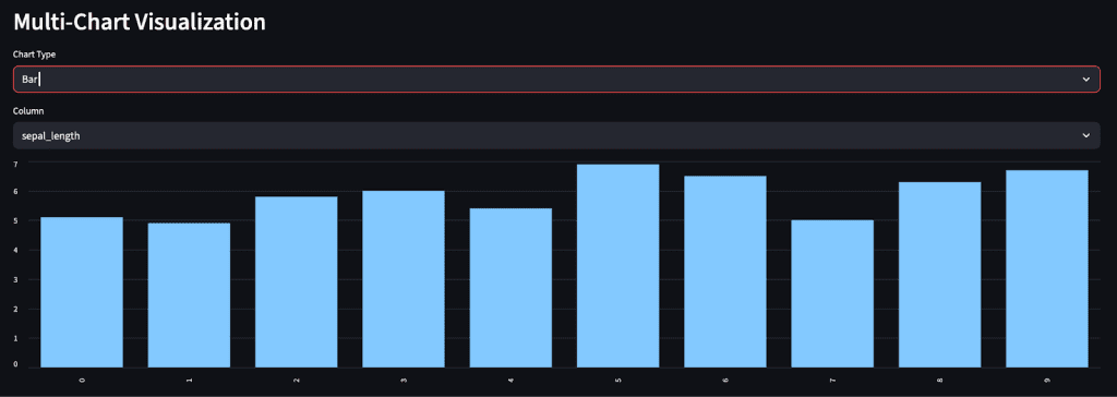 Instead of static tables, you’ll let users pick chart types and variables, and Streamlit will re-render the visualization instantly, making it ideal for exploratory data analysis (EDA).