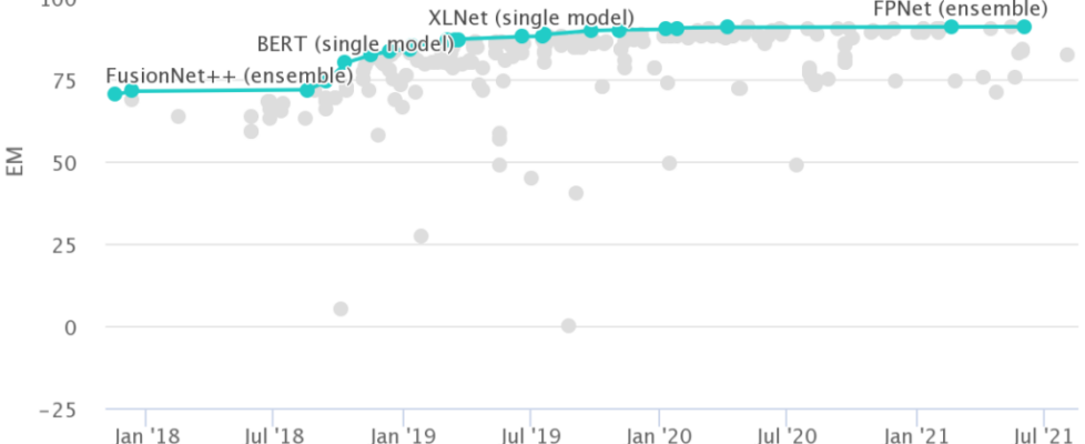 Header image: Performance on SQuAD 2.0 over time (Credit: Papers with Code)