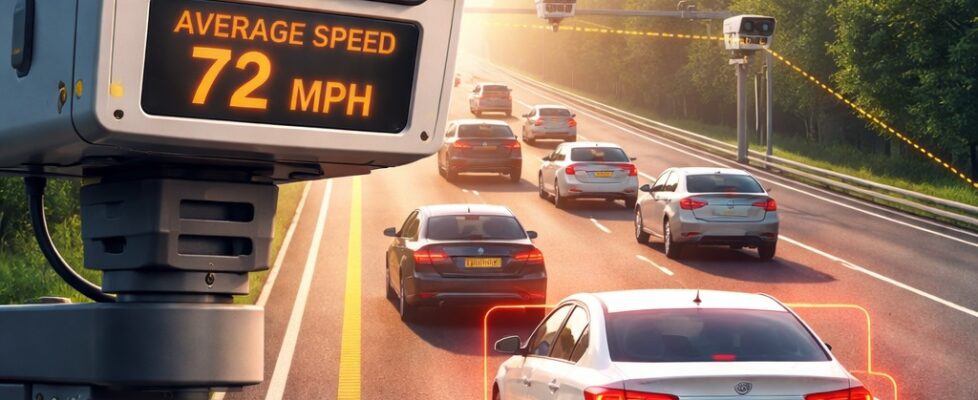 Este sistema se apoya en cámaras de control de velocidad separadas entre sí, normalmente entre un cuarto y media milla en las zonas de obra. Cada vez que un vehículo pasa por una de ellas, el sistema registra imagen, matrícula y marca temporal. Después calcula la velocidad media entre dos puntos dividiendo la distancia recorrida por el tiempo empleado. Si esa media supera el límite aplicable, llega una multa. No importa tanto lo que hiciste justo delante de la cámara como lo que hiciste durante todo el trayecto vigilado. Eso es lo verdaderamente disruptivo del modelo, y también lo que lo hace mucho más difícil de esquivar con hábitos oportunistas.