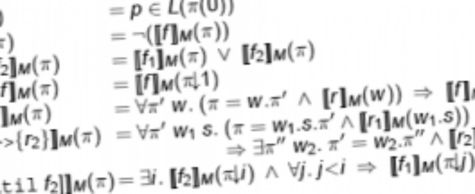 “Temporal Logic and Model Checking” by Prof Mike Gordon (not to be confused with the evil “Hoare Logic” course!). Behind the nasty notation hurdle (see the image on the right) lies another self-contained and straightforward course. This is also reflected in the exam results: the median marks for both TL&MC questions in 2011/2012 were 17/20!