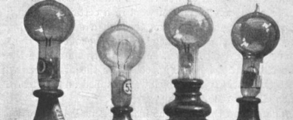 Edison didn’t invent the concept of incandescent lamps; there were several versions predating his efforts. However, they generally had a a very short life span and required high electric current, so they weren’t well suited to Edison’s vision of large-scale commercialization. He experimented with different filament materials starting with carbonized cardboard and compressed lampblack. This, too, quickly burnt out, as did filaments made with various grasses and canes, like hemp and palmetto. Eventually Edison discovered that carbonized bamboo made for the best filament, with life spans over 1200 hours using a 110 volt power source.
