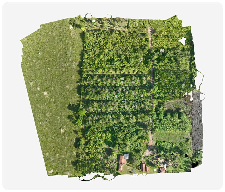 Drone footage of a mature cocoa, coconut, and mahogany agroforestry system, adjacent to a degraded pasture in southeast Par, Brazil.