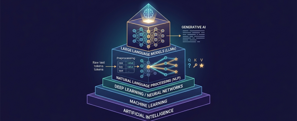 Key insight from lectures: Generative AI is not a completely new field — it’s a specialized evolution within the existing AI hierarchy, sitting inside NLP, which sits inside Deep Learning.