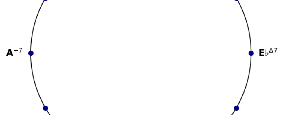 minor 7th, dominant 7th, major 7th, skip