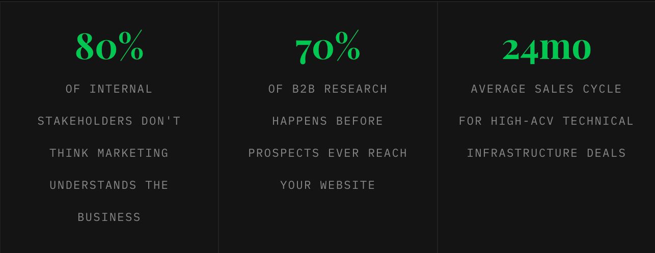The implication: you can run a perfect demand gen program — the right ICP targeting, the right channels, the right nurture sequences — and still lose deals in rooms you never had access to, to objections you never knew existed, from stakeholders who never read a single piece of your content.