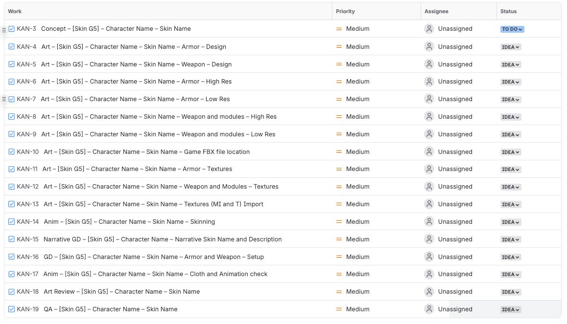 It was unclear what was happening during development or how it was being carried out. The quality and consistency of task updates depended entirely on the developer themselves. There was no way to track progress remotely or outside the morning stand-ups. If an artist got sick, the lead could partially take over their task, leave no notes at all, and still close it.