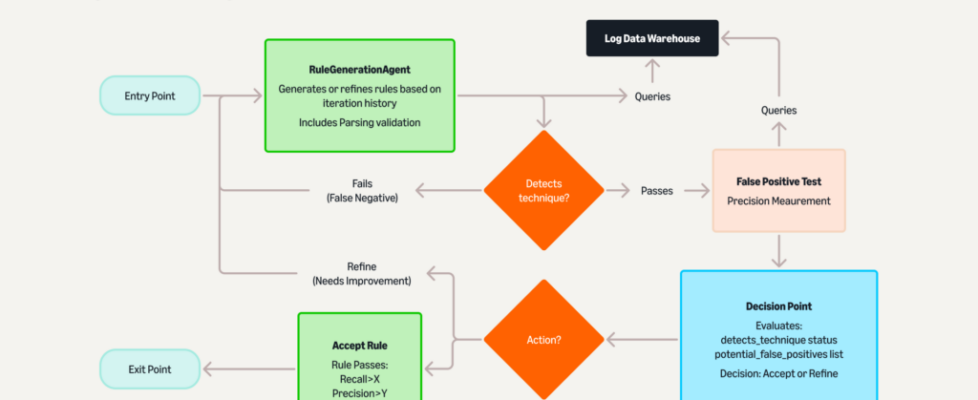 The system generated 64 variants of the threat and developed an improved detection rule. Testing against these variants and one hour of production audit data, the rule achieved 1.00 precision and 1.00 recall. The improvement process demonstrated consistent reproducibility across multiple independent runs. This case study uncovered additional threat-hunting opportunities and informed multiple new detection rules, demonstrating ATA’s ability to systematically strengthen our defenses.