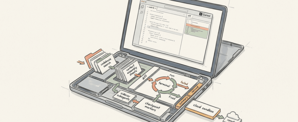 Practical teardown of Cursor’s coding agent, from codebase search and diff application to terminal loops, subagents, checkpoints, and…