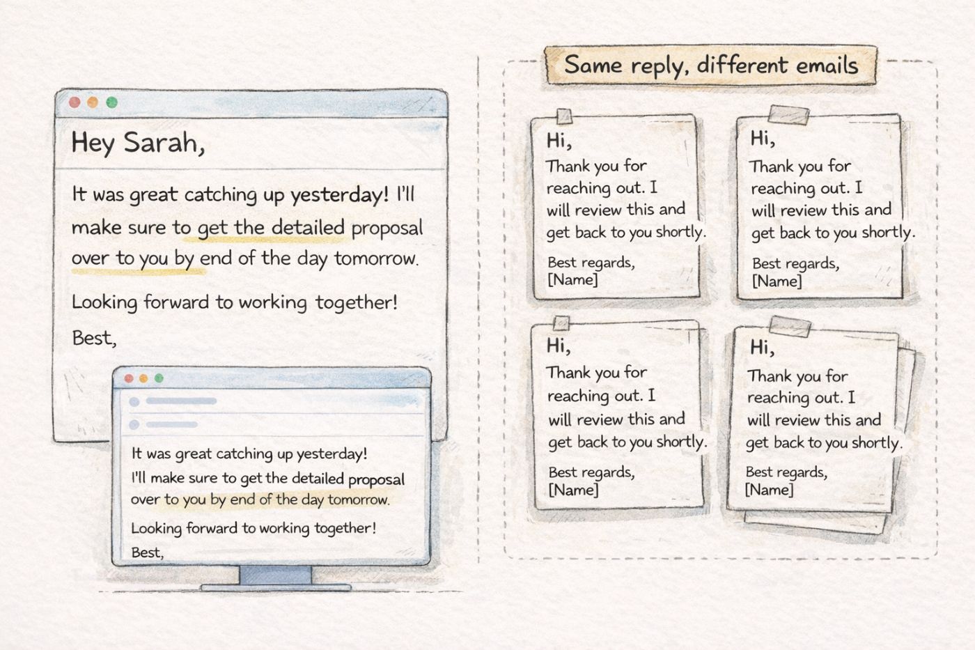 Fast replies are easy. Replies that still sound like you are not.