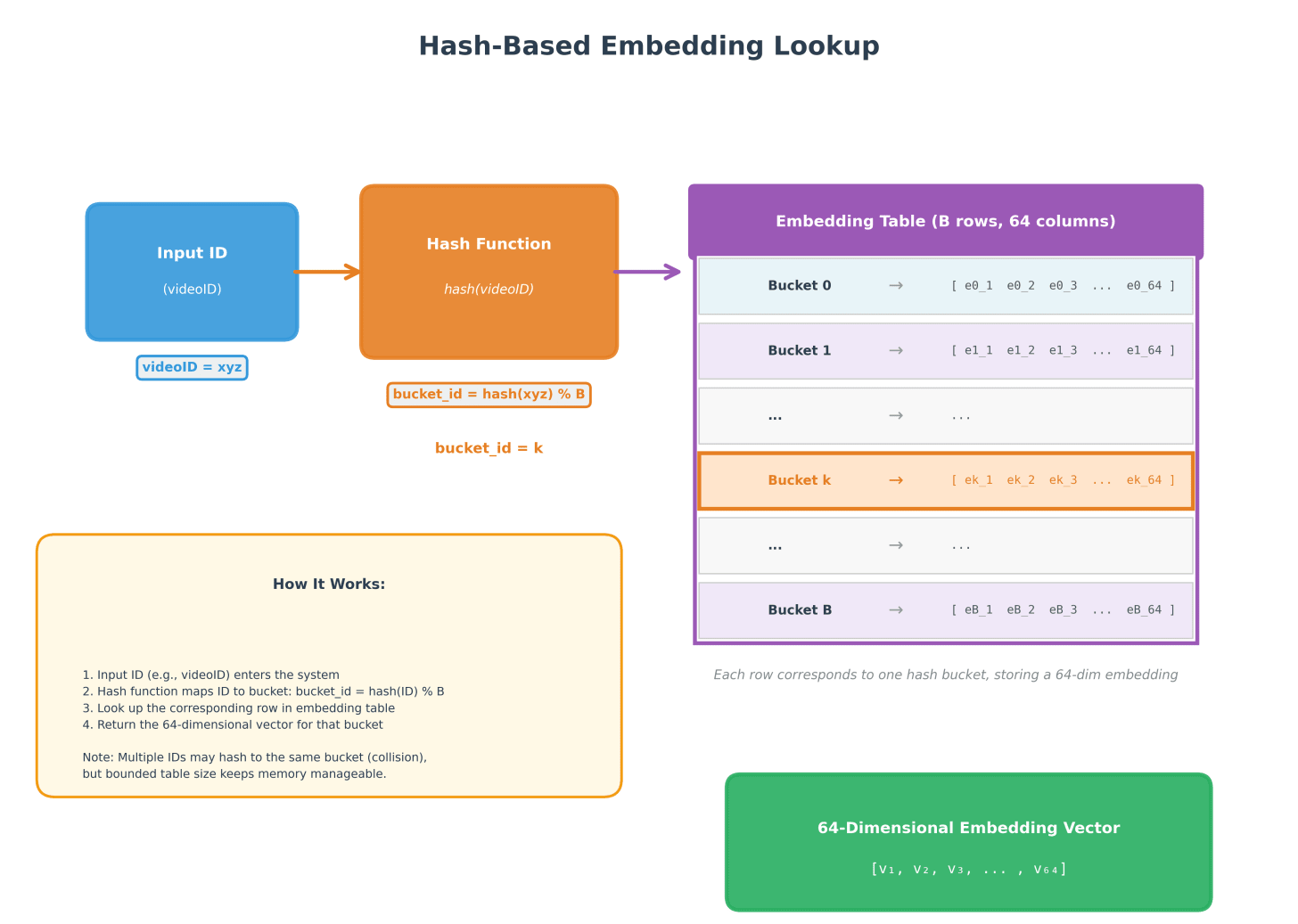 Figure 4: Hash Based Embedding Lookup (Credit: Claude AI)