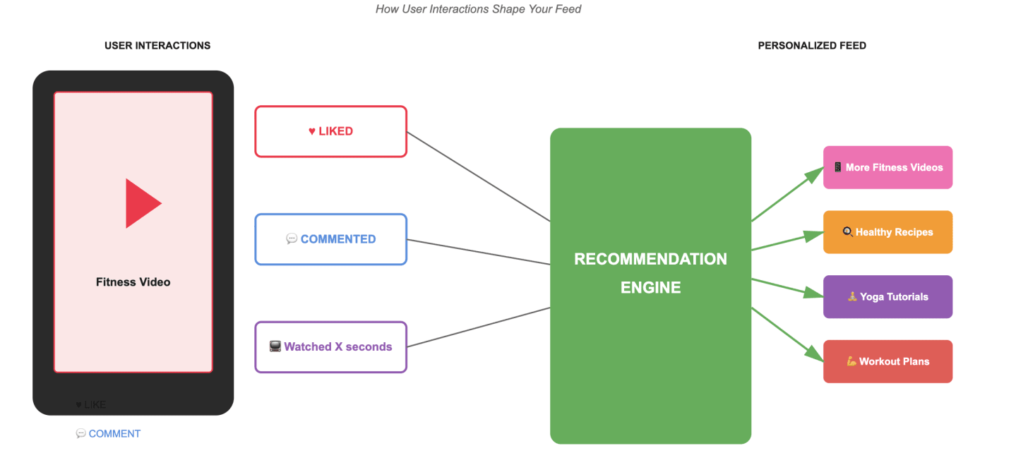 Think of it this way: Sarah watches two hiking trail videos back-to-back, liking both and watching them all the way through. A responsive system doesn’t wait until tomorrow or even an hour from now – it starts surfacing similar outdoor adventure content in the very next batch of recommendations. Every like, comment, and watch duration feeds immediately back into the system, ensuring the model adapts within her current session rather than learning about her preferences days later.