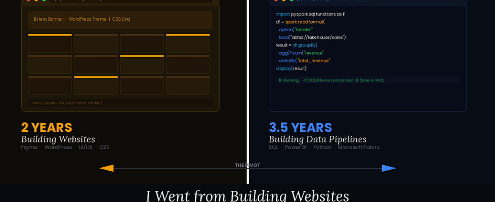 I spent two years building websites. WordPress themes, Figma prototypes, UI/UX flows, landing pages that had to convert or the client would call on a Friday afternoon. Then I pivoted — fully, deliberately — into data analytics. Power BI, SQL, Python, Microsoft Fabric, the whole stack.