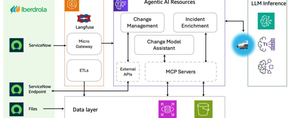 Through its partnership with AWS, Iberdrola implemented those agents in a groundbreaking solution using Amazon Bedrock AgentCore, targeting three key areas: optimizing change request validation in the draft phase, enriching incident management with contextual intelligence, and simplifying change model selection using conversational AI. These innovations reduce bottlenecks, help teams accelerate ticket resolution, and deliver consistent and high-quality data handling throughout the organization.