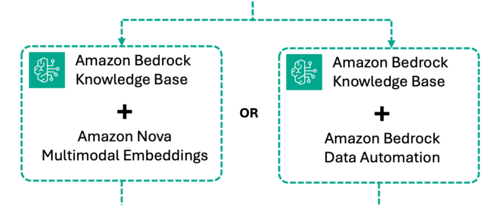 With multimodal retrieval, this workflow now handles images, video, and audio alongside text through two processing approaches. Amazon Nova Multimodal Embeddings encodes content natively into a unified vector space, for cross-modal retrieval where you can query with text and retrieve videos, or search using images to find visual content.