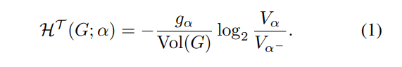 Definition 4.1 (H-dimensional Structural Entropy (Li & Pan, 2016)). Given a weighted graph G = (V, E) with weight function w and a partitioning tree T of G with height H, the structural information of G with respect to each non-root node α of T is defined as