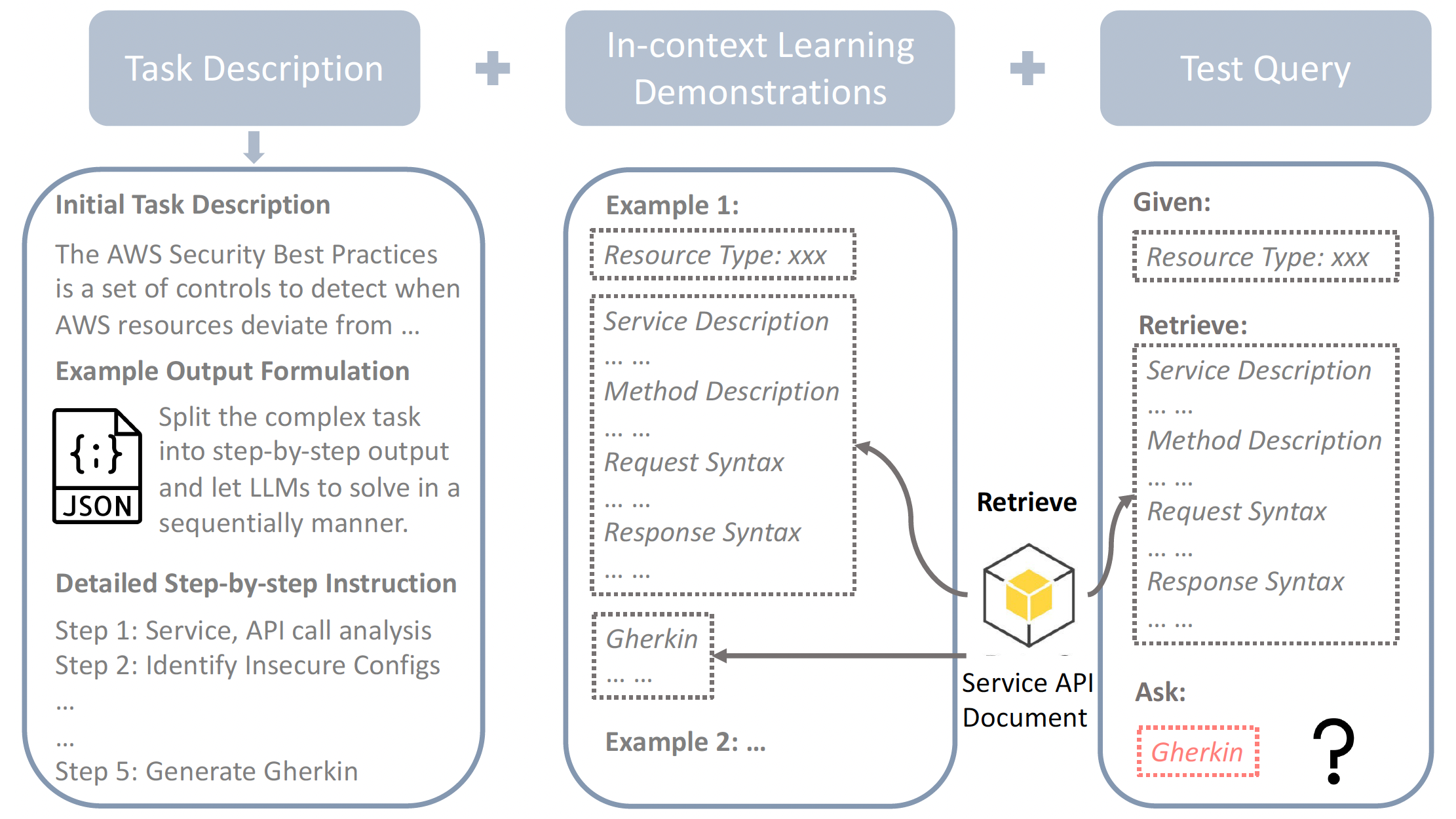 For instance, LLMs can generate Gherkin specifications known as gherkins for basic security requirements such as encryption of data at rest or logging. This process helps ensure that jobs using AWS services like Amazon SageMaker AutoML are properly configured to meet security standards, without engineers having to dive into documentation every time.