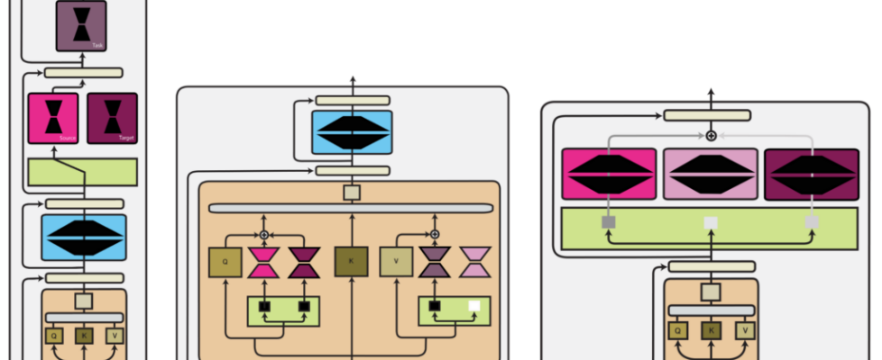 We provide an overview of the three comptuation functions (in addition to a hypernetwork) as part of a Transformer architecture below: