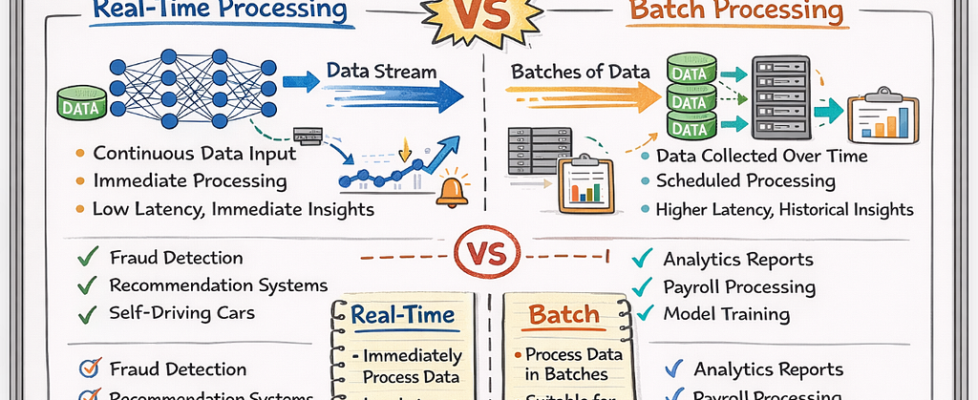 In the world of multimodal AI, systems process and combine multiple types of data — such as text, images, audio, and video — to generate intelligent insights or responses. One of the key decisions in designing these systems is whether to use real-time processing or batch processing. Real-time processing delivers results instantly as data arrives, while batch processing handles large volumes of data on a schedule. Choosing the right approach impacts system performance, cost, and user experience, and understanding how to implement each is essential for building scalable AI applications.