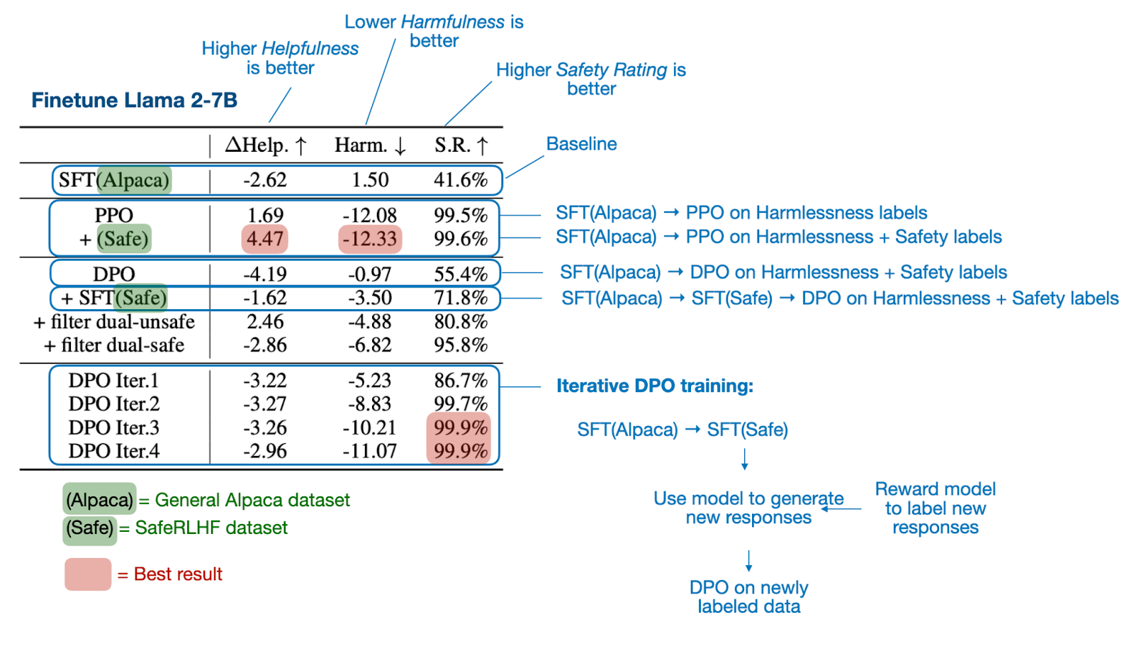 Before summarizing the paper itself, here’s an overview of Proximal Policy Optimization (PPO) and Direct Preference Optimization (DPO), both popular methods in aligning LLMs via Reinforcement Learning with Human Feedback (RLHF). RLHF is the method of choice to align LLMs with human preferences, improving the quality but also the safety of their responses.