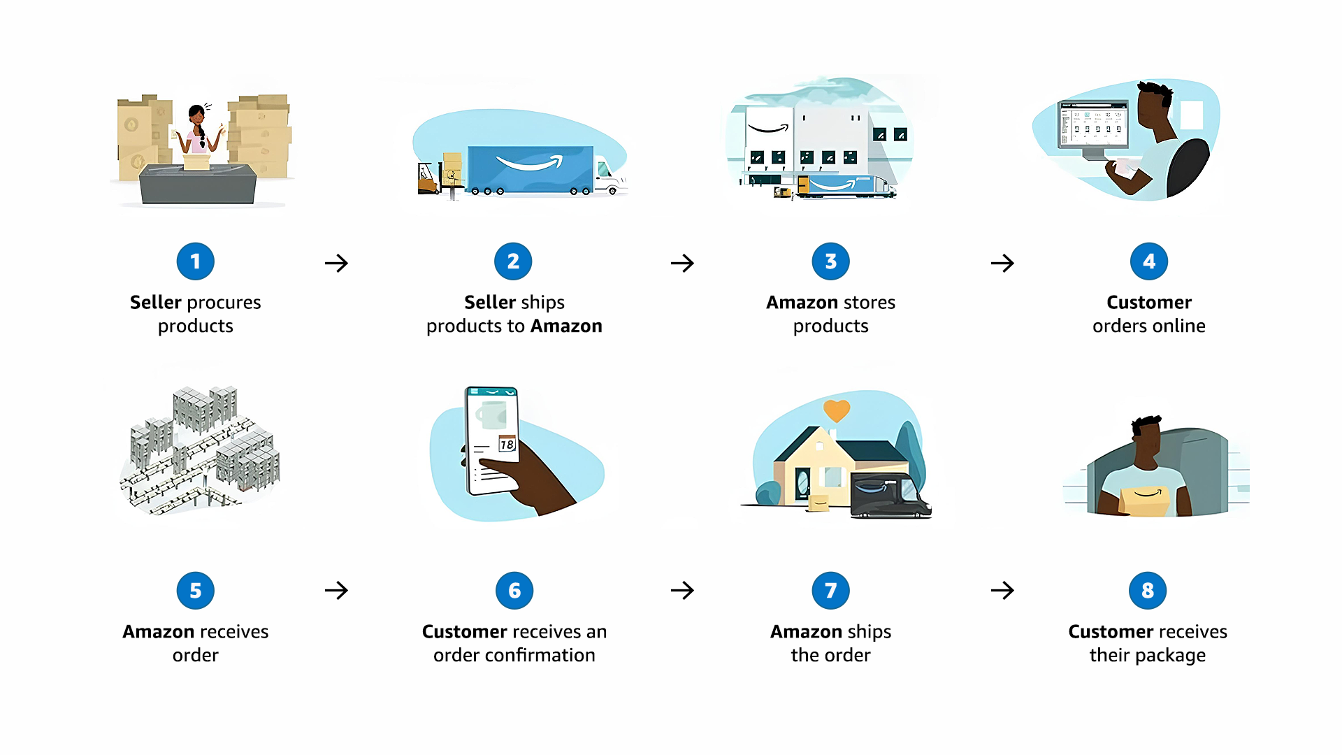 More than 60% of sales in Amazons store come from independent sellers. One of the big drivers of this growth has been Fulfillment by Amazon, or FBA, which is an optional program to let sellers outsource order fulfillment to Amazon. FBA provides customers access to a vast selection of products at fast delivery speeds, and it lets sellers leverage Amazons global logistics network and advanced technology to pick, pack, and ship customer orders and handle customer service and returns. FBA also uses state-of-the-art optimization and machine learning models to provide sellers with inventory management recommendations, such as how much of which products to stock, how to promote products through sponsored ads, and whether and when to sell excess inventory at a discount.