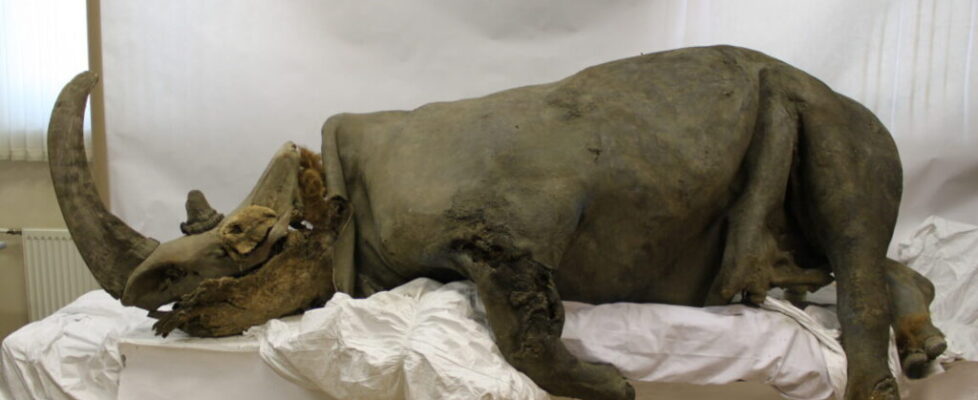 Scientists sequence a woolly rhino genome from a 14,400-year-old wolf’s stomach