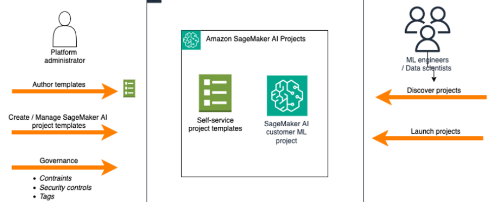 Teams can use Amazon SageMaker AI Projects to create, share, and manage fully configured ModelOps projects. Within this structured environment, you can organize code, data, and experiments—facilitating collaboration and reproducibility.