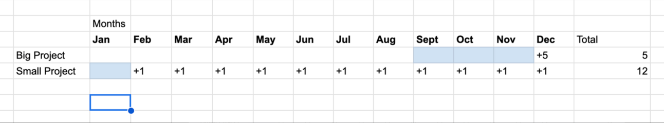 Pushed to its logical extreme, if you ship the small project in January and the big project in December, you can see that the “small project” produced 12 points of value and the “big project” only produced 5.