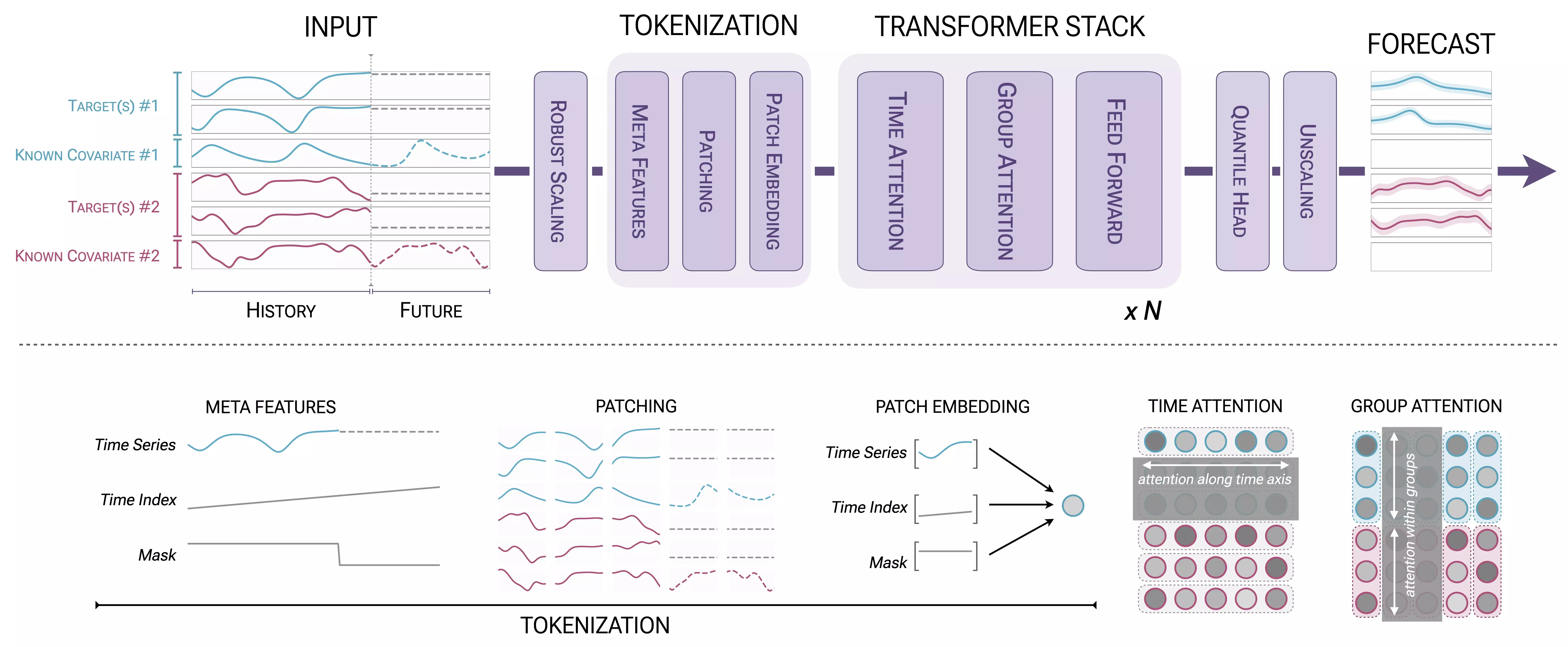 Unlike its predecessors, which supported only univariate forecasting, Chronos-2 can jointly predict multiple coevolving time series (multivariate forecasting) and incorporate external factors like promotional schedules or weather conditions (covariate-informed forecasting). For example, cloud operations teams can forecast CPU usage, memory consumption, and storage I/O together, while retailers can factor in planned promotions when predicting demand. The model’s group attention mechanism enables it to capture complex interactions between variables, making it particularly valuable for cold-start scenarios where limited historical data is available.