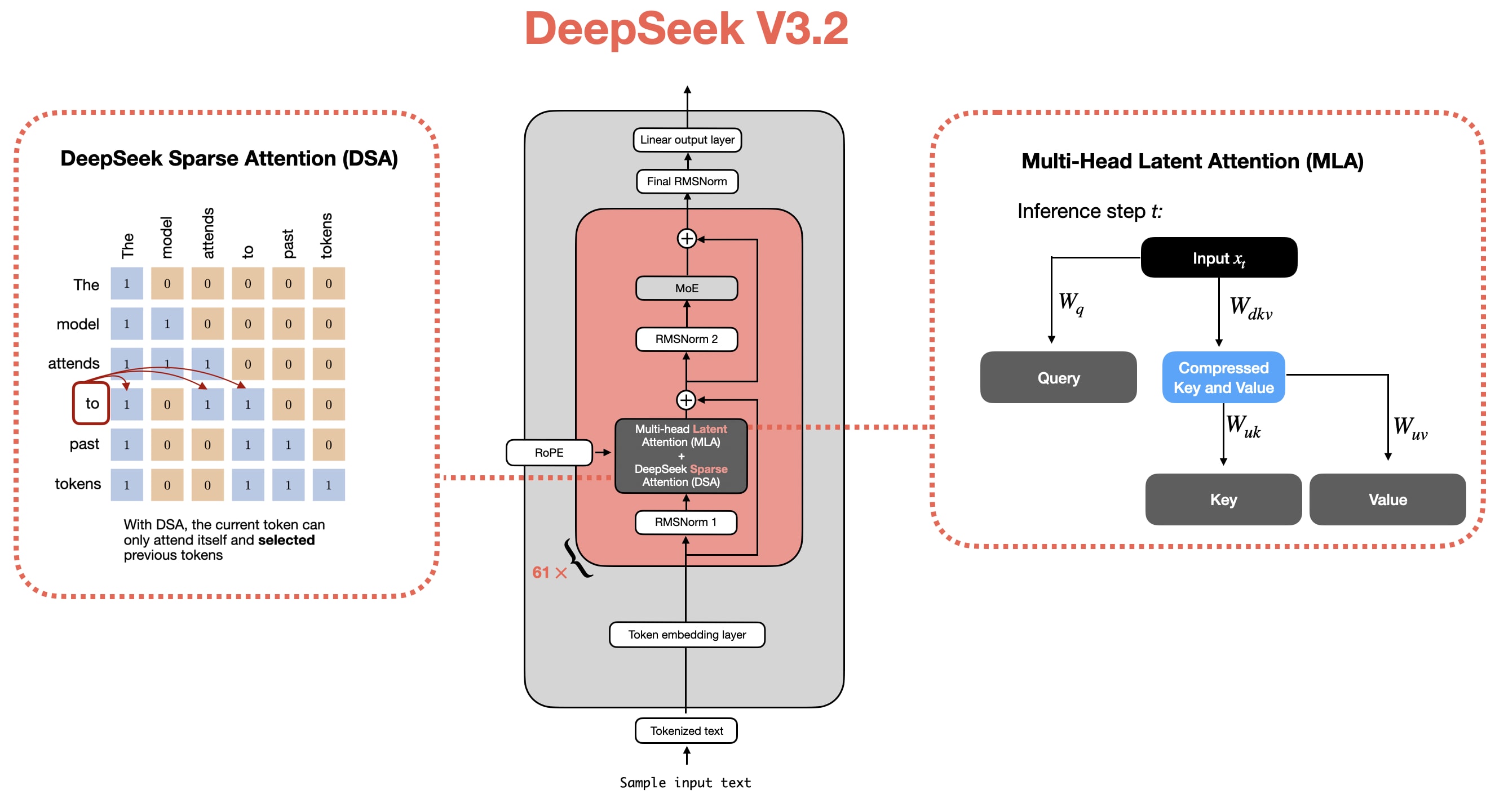 The architecture is overall similar to DeepSeek V3 but they added a sparse attention mechanism to improve efficiency.