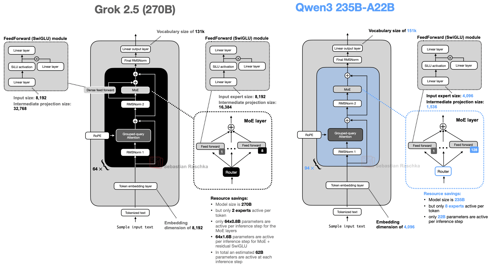 However, I think that there is still a lot of value in examining the structural changes of the architectures themselves to see what LLM developers are up to in 2025. (A subset of them are shown in Figure 1 below.)