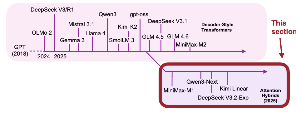 Interestingly, there was a recent plot twist, where the MiniMax team released their new 230B parameter M2 model (discussed in section 13) without linear attention, going back to regular attention. The team stated that linear attention is tricky in production LLMs. It seemed to work fine with regular prompts, but it had poor accuracy in reasoning and multi-turn tasks, which are not only important for regular chat sessions but also agentic applications.
