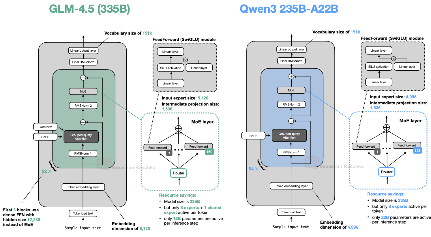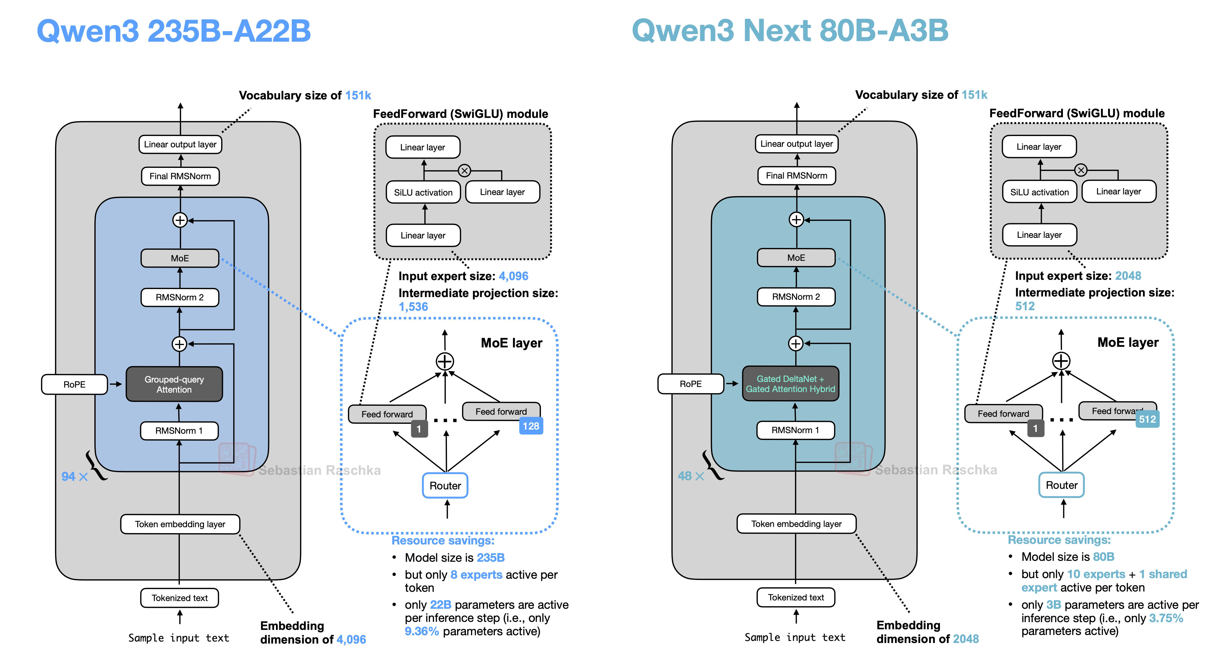 Overall, it’s the same architecture but just scaled up. Also, the proportions (e.g., going from the input to the intermediate size in the feed forward layer, and so on) roughly match the ones in Qwen3.