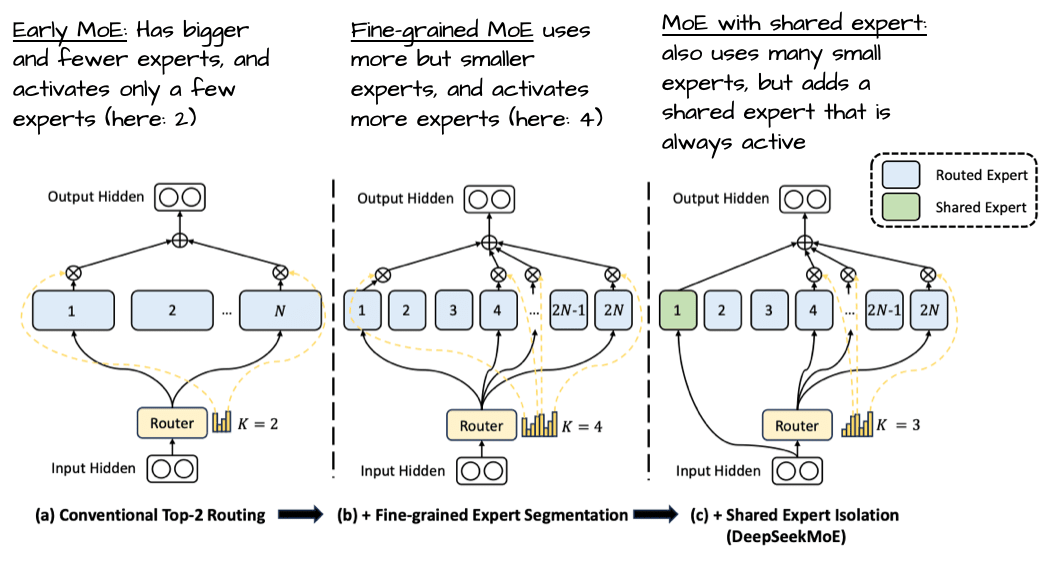 The other major architectural component in DeepSeek worth highlighting is its use of Mixture-of-Experts (MoE) layers. While DeepSeek did not invent MoE, it has seen a resurgence this year, and many of the architectures we will cover later also adopt it.