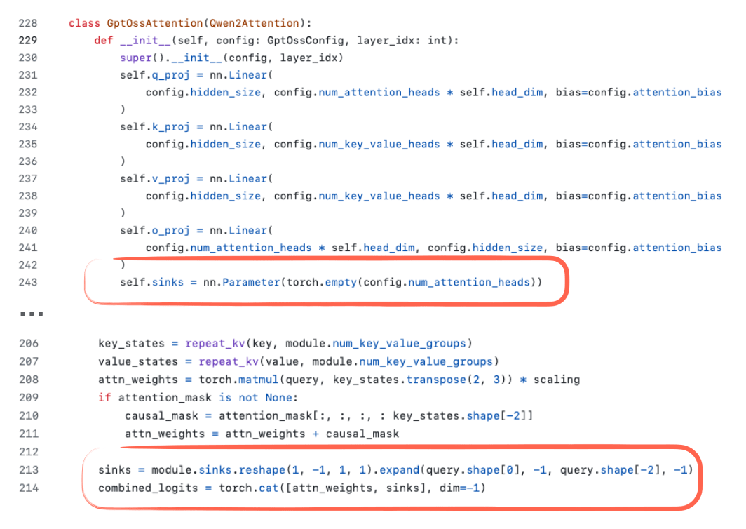 Interestingly, it uses sliding window attention (SWA) in a 5:1 ratio with global (regular) attention, similar to Gemma 3 (see section 3). However, it uses a much more aggressive sliding window size (128) that is 8 times smaller than Gemma 3 (1024).