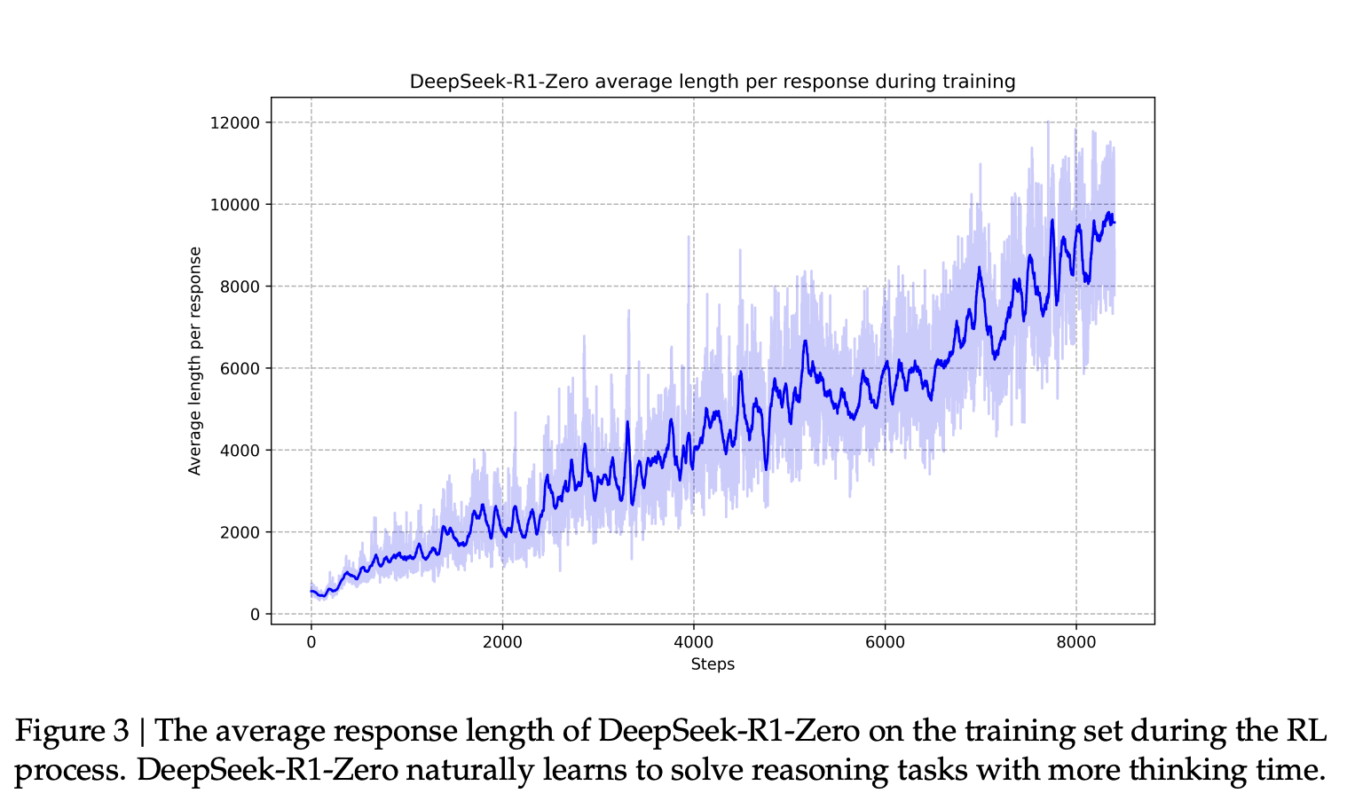 Corresponding with the improvement of this capability is the length of the generated response, where the model generates more thinking tokens to process the problem.