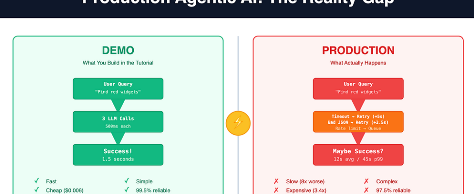 The agentic AI hype is everywhere. Elegant demos showcase autonomous systems solving complex problems. Vendors promise, “Just add agents and watch the magic.” Then, you deploy to production. Your latency explodes. Costs spiral. Error rates skyrocket.