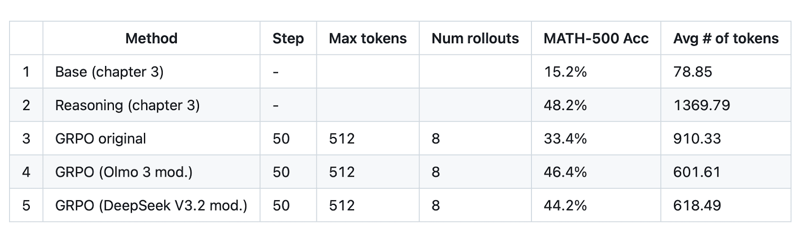Anyways, I have a vanilla GRPO script in my “Build A Reasoning Model (From Scratch) repository if you want to toy around with it. (I will add more ablation studies with the respective modifications soon.)