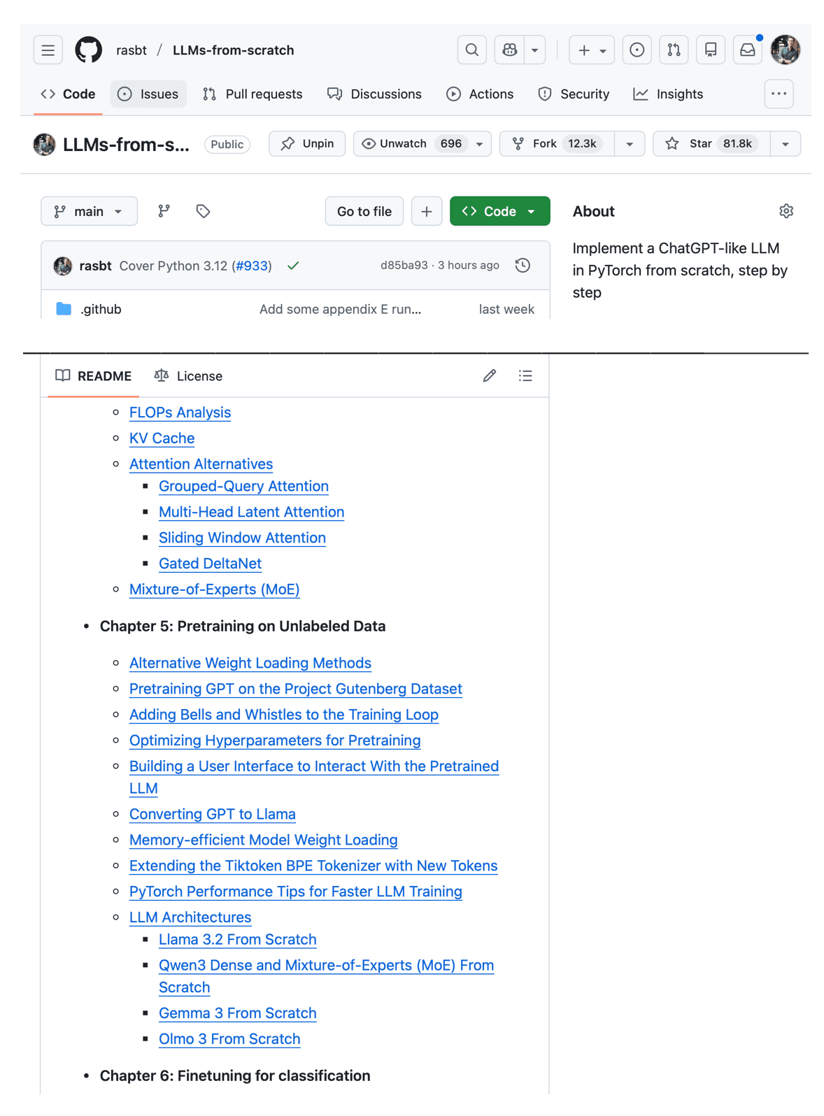Instead, for now, I prefer to keep the book as is, since it works really well for people who want to get into LLMs. And for readers interested in more advanced material, as a follow-up, I added substantial bonus material to the book’s GitHub repository over the course of the year. I plan to continue expanding these materials over time.